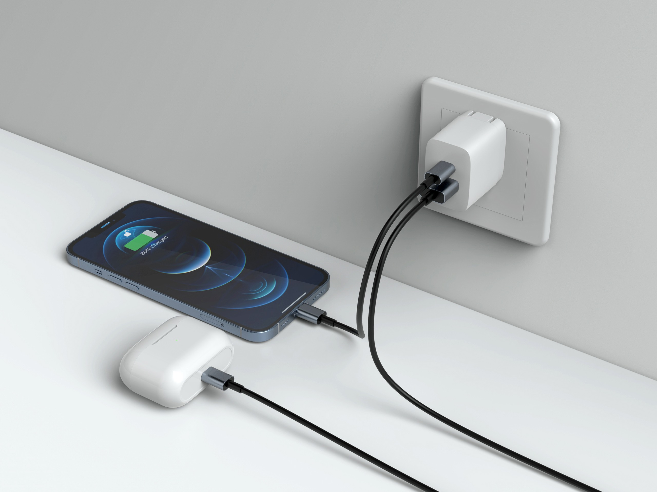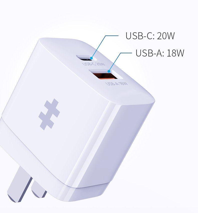 Kích thước rất nhỏ gọn, nhẹ cho một củ sạc nhanh 20W hai cổng.