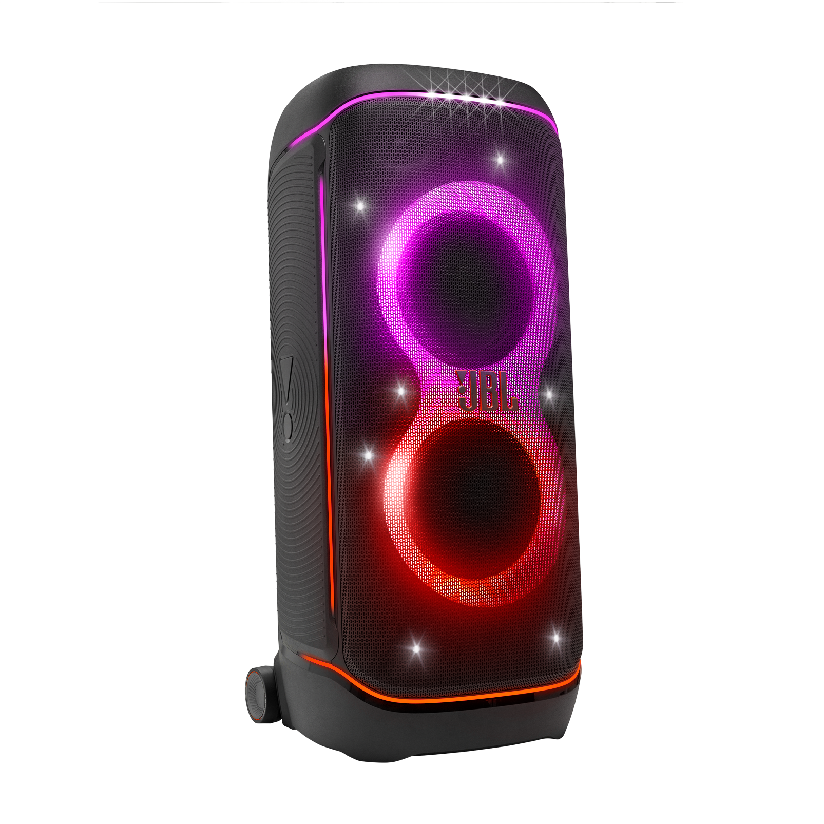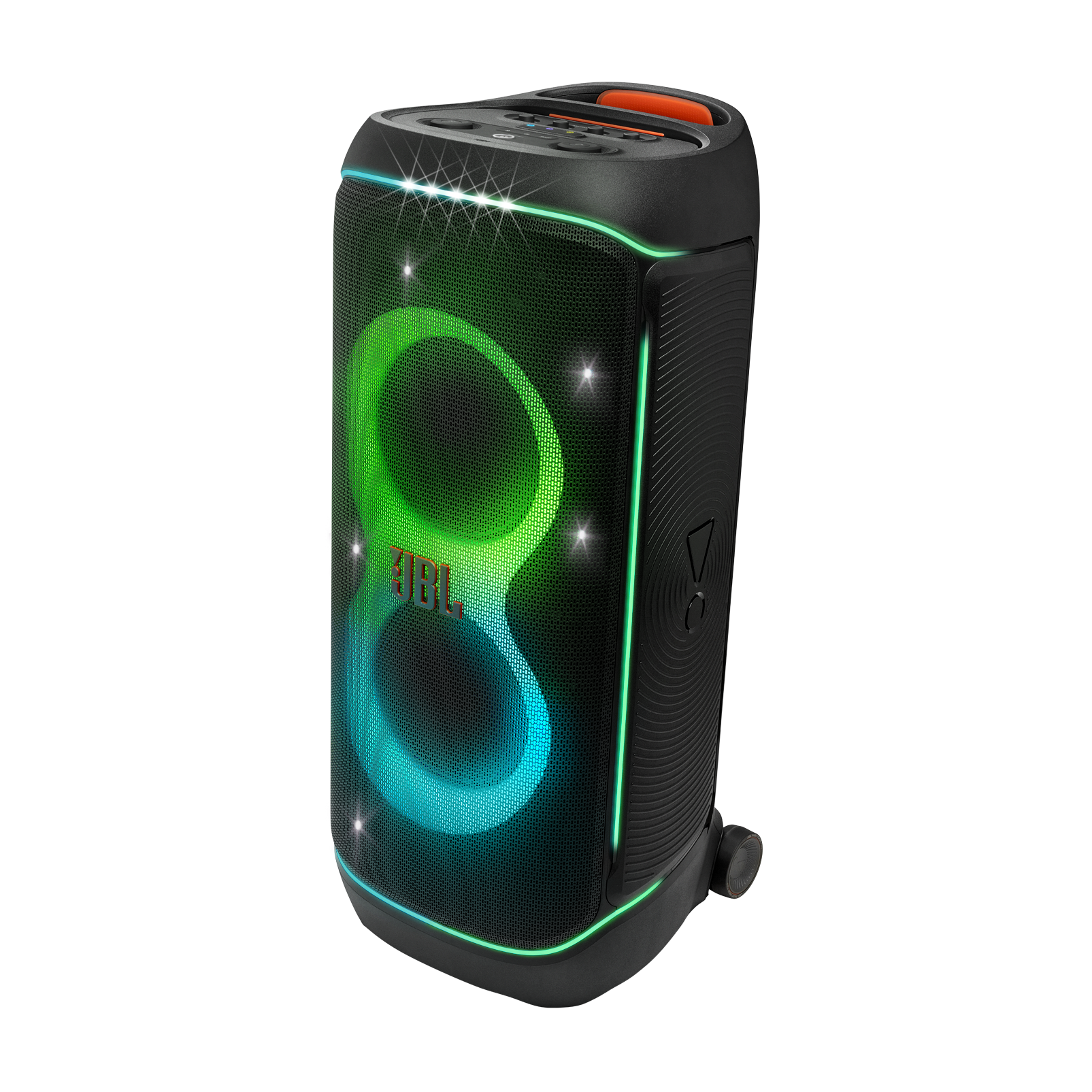 Kéo loa đi khắp bữa tiệc thật dễ dàng với bánh xe lớn lăn mượt mà trên mọi địa hình và tay cầm tích hợp thoải mái, tiện lợi để mang theo bất cứ lúc nào.