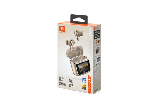 JBL Tour Pro 3 là tai nghe TWS tối tân nhất được ra mắt trên thị trường. Kế thừa công nghệ màn hình thông minh từ thế hệ trước, JBL Tour Pro 3 gây ấn tượng bởi thiết kế mới mẻ hơn với nhiều tính năng thông minh gói gọn trong màn hình cảm ứng tiện dụng - cho phép bạn toàn quyền kiểm soát mọi trải nghiệm chỉ bằng thao tác chạm, khi mà điện thoại vẫn yên vị trong túi. Ghép nối liền mạch với bất kỳ thiết bị Bluetooth® nào và đắm chìm trong âm nhạc, phim ảnh, và trò chơi với âm thanh không gian JBL Spatial 360 với tính năng theo dõi chuyển động đầu. JBL Tour Pro 3 còn được chứng thực bởi tiêu chuẩn âm thanh Hi-Res với chất âm JBL Pro Sound huyền thoại. Khi cần tập trung làm việc, gạt bỏ mọi tiếng ồn xung quanh với công nghệ Chống ồn chủ động thích ứng theo thời gian thực (Real-Time True Adaptive Noise Cancelling). Trên mỗi chuyến bay, bạn có thể sử dụng hộp sạc thông minh như một bộ truyền phát âm thanh không dây để kết nối với hệ thống giải trí trên máy bay (hoặc PC) và thưởng thức những thước phim với âm thanh chuẩn rạp. Khi cần họp hành, dễ dàng kết nối hộp sạc thông minh trên tai nghe với máy tính để có chất lượng đàm thoại hoàn hảo.