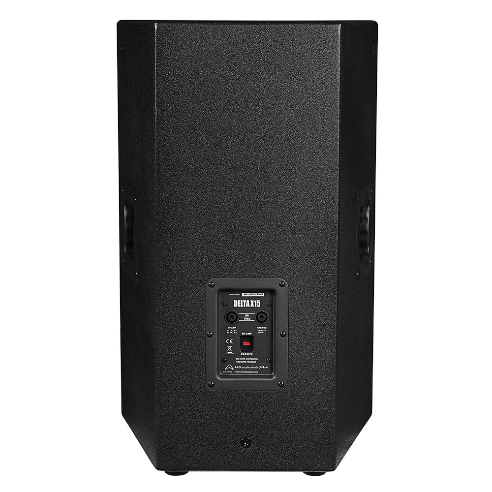 Thùng loa Wharfedale Delta-X15 được làm từ gỗ dán cao cấp và tính năng kép gắn kết góc cực giúp đảm bảo âm thanh phát ra từ loa có thể hướng tới trực tiếp khán giả và không bị ảnh hưởng bởi vách trần nhà. Bên ngoài thùng loa được sơn phủ một lớp sơn Rhino Rock sang trọng, bắt mắt và giúp loa có thể chịu đựng được mức độ âm thanh cao.