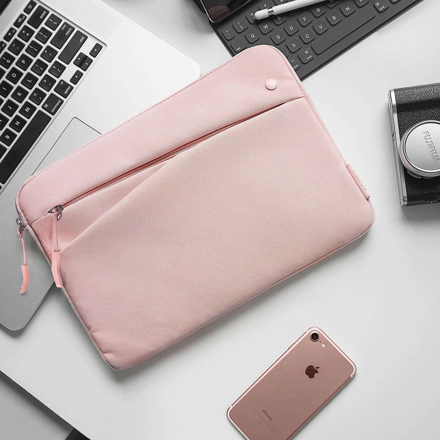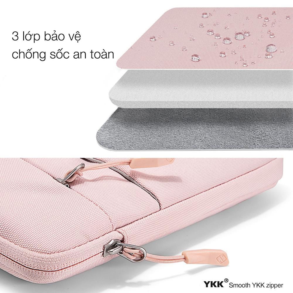 Sử dụng chất liệu chống va đập bên ngoài bằng Polyester kháng nước với lớp lót lông cừu mềm giúp bảo vệ hoàn toàn chống va đập và trầy xước cho máy tính